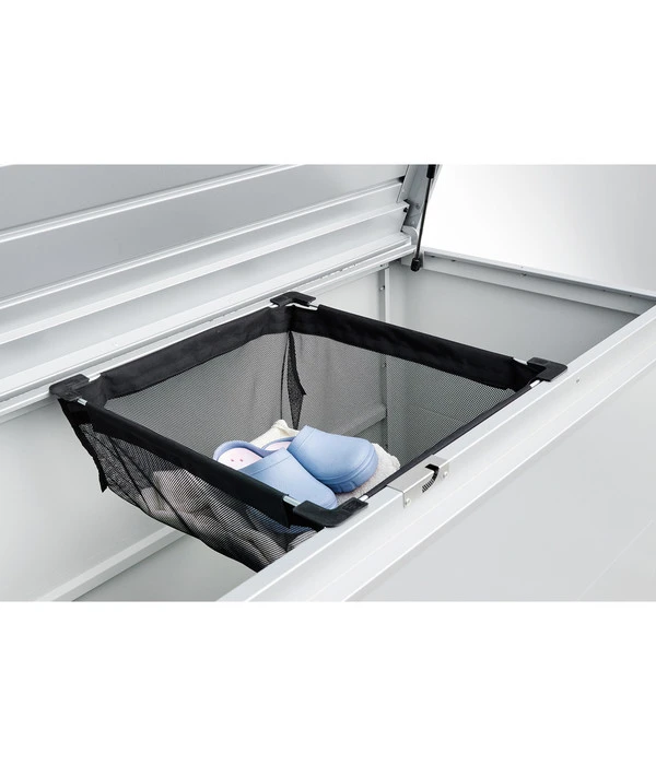Oftmals sind es die kleinen Dinge im Leben, die uns am meisten weiterhelfen – und zugleich am schnellsten verschwinden. Auch Sie haben ganz bestimmt schon mal ein wichtiges Utensil gesucht, das einfach nicht an der gedachten Stelle auftaucht. Es fehlt womöglich einfach an einer festen, praktischen Box, in der solche Gegenstände ihren Platz finden. Genau hier kommt der Biohort Einhängesack Typ B ins Spiel. Mit ihm bewahren Sie Kleinteile zukünftig ohne Probleme auf. Das auf Anhieb einsatzbereite Zubehör passt perfekt zum HighBoard 160, zur LoungeBox sowie zur Freizeitbox 130 von Biohort. Sie legen den Biohort Einhängesack Typ B einfach auf den Rahmen des jeweiligen Geräteschrankes. Alternativ steht Ihnen eine Wandschiene zum Einhängen in zwei Regalsteher zur Verfügung.
