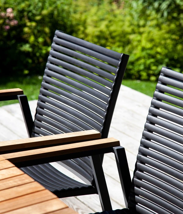 Von dem Gestell mit pulverbeschichtetem Aluminium bis hin zu den schicken Armlehnen aus pflegeleichtem Teakholz sind die Stapelstühle Mood Extreme von Cinas ein wahrer Hingucker. Tradition trifft auf Moderne, was auf jeder Terrasse eine gute Figur macht. Greifen Sie gleich zu, denn durch die bereits montierte Lieferung der Stühle brauchen Sie sich um nichts weiter kümmern. Für den maximalen Komfort können Sie sich außerdem direkt ein Polster dazubestellen.