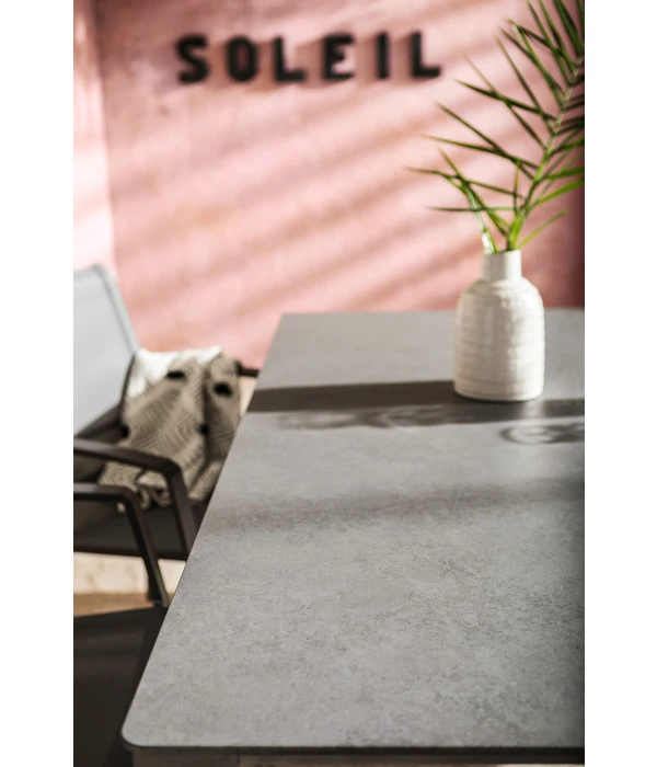 Gerne wird der Dehner Gartentisch Nancy mit Stühlen kombiniert, die ein Alugestell mit Textilene-Bespannung haben, wie der Stapelstuhl aus der gleichnamigen Gartenmöbelserie. Doch dank der Unterschubhöhe von 68 cm passen auch viele andere Stühle ausgezeichnet zu diesem formschönen Tisch.