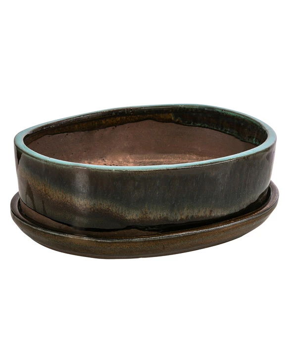 Die glasierte Oberfläche der robusten Keramik-Bonsaischale von Dehner schimmert wunderschön im Licht, was dem Gefäß einen sehr hochwertigen Look verleiht. Darüber hinaus ist im Lieferumfang praktischerweise der passende Unterteller enthalten, der das edle Gesamtbild aus Schale und Bonsai wunderbar abrundet. Wenn Sie Ihr Bäumchen in das Gefäß gepflanzt haben und alles zusammen betrachten, werden Sie begeistert sein von diesem perfekten Rahmen für Ihre Pflanze und die ovale Dehner Keramik-Bonsaischale nicht mehr missen wollen. Gönnen Sie Ihrem Bonsai diesen großen Auftritt und bestellen Sie dafür dieses attraktive Pflanzgefäß noch heute.