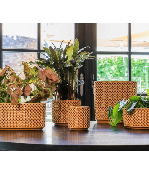 Sie schätzen den Stil der Siebzigerjahre und wollen das auch in Ihrer Wohnung zeigen? Dann wird Sie die ovale Keramik-Jardiniere Thies aus dem Hause Dehner bestimmt begeistern. Das ausgefallene Schmuckstück fasziniert mit seinem graphischen Muster und den knalligen Farben, die sofort für gute Laune sorgen. Dank seines coolen nostalgischen Designs zieht das schöne Gefäß die Blicke auf sich und dadurch auch auf Ihr Gewächs. Vielleicht bestücken Sie den Übertopf sogar mit einer Retro-Pflanze wie der Schusterpalme, einem Bogenhanf oder einer Clivia. Viele Grünlinge machen darin eine gute Figur, sodass Sie sich nur noch entscheiden müssen.