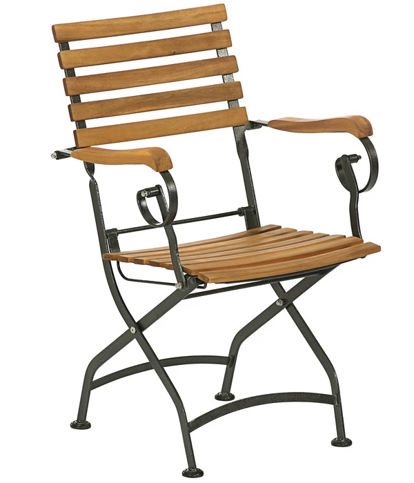 Die Materialkombination Stahl und Holz ist keine neue Erfindung, sondern wird seit Jahrhunderten vor allem bei hochwertigen Möbeln im klassischen Landhaus-Look eingesetzt. Mit dem Dehner Klappsessel Tegernsee können wir Ihnen aber einen Gartensessel vorstellen, der sich zwar an den berühmten historischen Vorbildern orientiert und doch mit einer ganz eigenen Persönlichkeit aufwartet. Vor allem die leicht verspielte Formgebung verleiht dem Gartensessel ein nostalgisches Flair, das ihn zum Hingucker auf Ihrer Terrasse machen wird, während die hochwertige Materialqualität und die handwerklich sorgfältige Verarbeitung für eine lange Lebensdauer sorgen. Gönnen Sie sich und Ihrem Freisitz im Grünen das Besondere – die exklusive Atmosphäre, die der Dehner Klappsessel Tegernsee verbreitet, wird auch Ihren Gästen nicht verborgen bleiben.