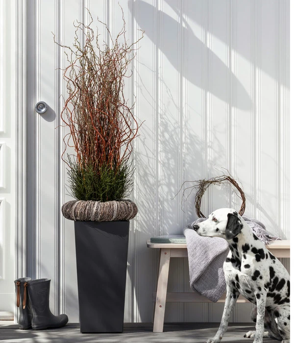 Mit seiner leicht konisch zulaufenden Form wirkt der Kunststoff-Topf Elise wie eine Deko-Säule. Die matte Oberfläche unterstützt gekonnt seine dezent zurückhaltende Optik. Das ist auch der Grund, warum er in nahezu jedes Wohn- oder Garten-Ambiente hinein passt. Selbstbewusst verschönert der Kunststoff-Topf Elise Terrasse oder Wohnraum. Ein Effekt, der sich noch multipliziert, wenn man die Bepflanzung bewusst darauf abstimmt. Sind die Pflanzen hoch aufstrebend, unterstreicht das seine Säulenoptik. Auf diese Weise lässt sich die Terrasse rahmen oder ein Wohnraum damit strukturieren.
