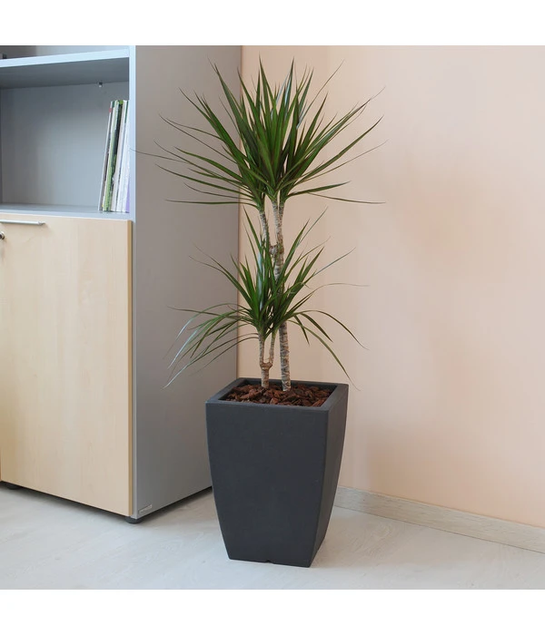 Ein Bäumchen im Garten, eine Blühpflanze am Balkon, ein Pflänzchen im Wohnzimmer – es gibt so viele Orte im und rund ums Haus, an denen man Pflanzen aufstellen kann. Wünschen auch Sie sich Pflanztöpfe, die einfach überall hinpassen? Dann hat Farmet die Lösung für Sie: das Kunststoff-Topf-Set Hydrus, inklusive einem großen und einem kleineren Topf. Durch ihre unauffällige, aber elegante Form fügen sich diese Pflanzgefäße perfekt in die Umgebung ein und sind im Innen- sowie im Außenbereich verwendbar. Kleiner Tipp: Einen besonders dekorativen Effekt erzeugen Sie durch die Kombination mit anderem Formen und Größen.