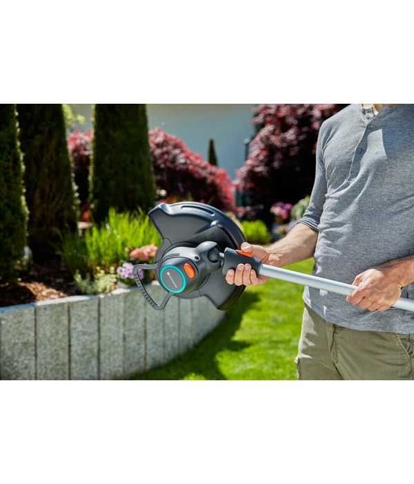 Gerade wenn man sich die Gartenarbeit teilt, möchte man einen Rasentrimmer besitzen, der individuell genutzt werden kann. Aus diesem Grund lässt sich der verstellbare Teleskopstiel des Gardena ComfortCut an die jeweilige Körpergröße anpassen. Außerdem ermöglicht der regulierbare Zusatzgriff eine ergonomische Bedienung. Erleichtern Sie sich das anstrengende Rasenschneiden und bestellen Sie den Gardena Turbotrimmer ComfortCut 550/28 am besten noch heute.