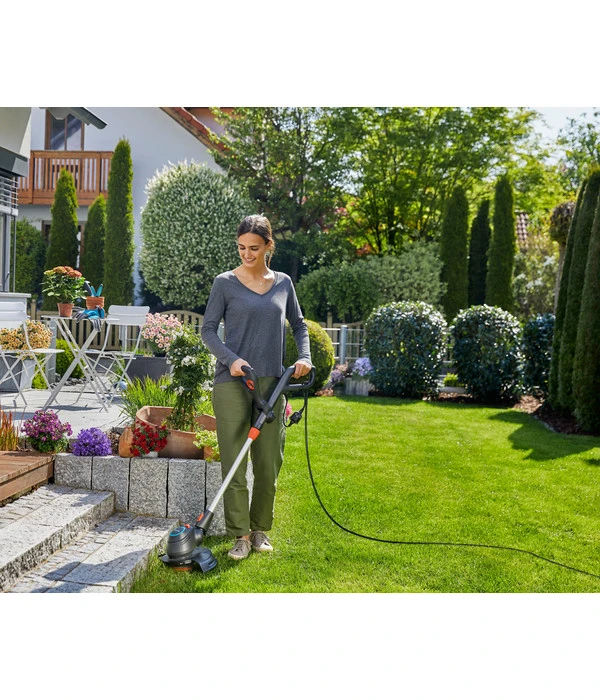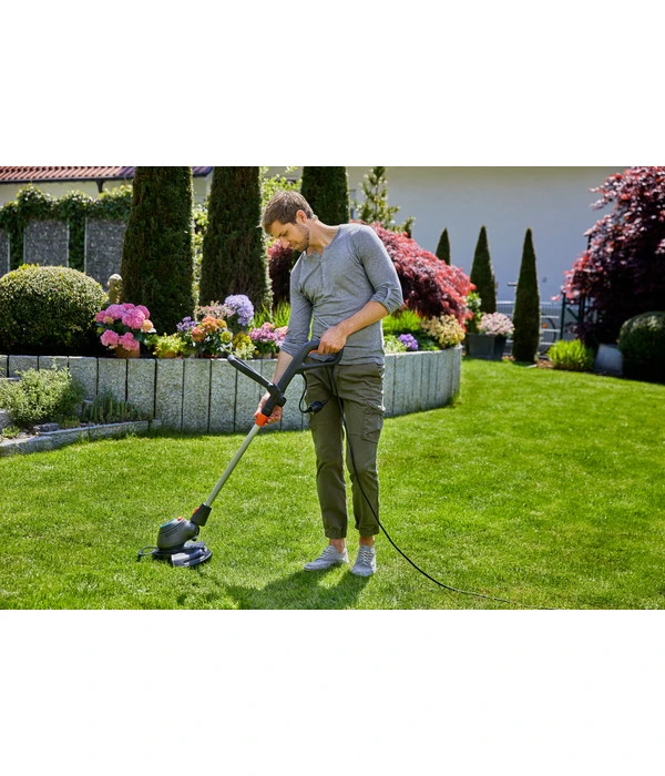 Sie wollen sich das Kürzen Ihres Rasens vereinfachen? Dann greifen Sie zum Turbotrimmer ComfortCut 550/28 von Gardena! Sein leichtes Gewicht ermöglicht ein langes und rückenschonendes Arbeiten, das sich ganz unkompliziert gestaltet. Dank des durchzugsstarken Motors profitieren Sie von der kraftvollen und ausdauernden Leistung des Geräts. Zum präzisen Schneiden von Rändern wie bei Wegen oder Beeten können Sie einfach die Kantenschneidfunktion aktivieren, um für optimale Ergebnisse zu sorgen. Auch Ihre Blumen und Sträucher sind mithilfe des abnehmbaren Pflanzen-Schutzbügels perfekt geschützt. Schließen Sie einfach das Stromkabel an und legen Sie los! Durch die intuitive Handhabung und viele praktische Funktionen wird ab jetzt das Pflegen Ihrer Rasenfläche kinderleicht.