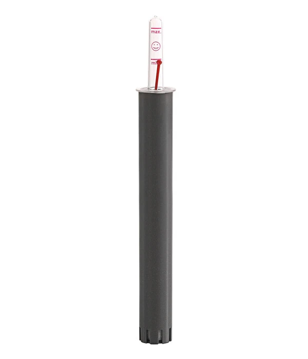 Der GREENBAR® Wasserstandsanzeiger besteht aus einem strapazierfähigen Kunststoffmaterial und hat eine Skala, die Ihnen den optimalen Stand des Wassers im Tank anzeigt. Das heißt: Der Fühler sollte idealerweise immer zwischen den Markierungen „Min“ und „Max“ stehen. Je nach Standort und Pflanzengröße reicht der Wasservorrat im Tank bis zu 8 Tage.