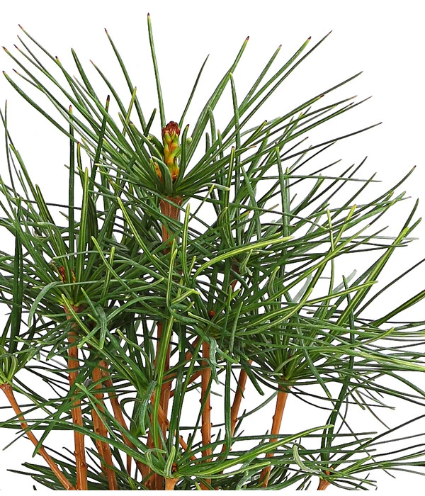 Der kegelförmige Wuchs, der von der Spitze bis zum Boden eng mit Ästen besetzt ist, und die imposante Wuchshöhe von 10 – 12 m machen die Japanische Schirmtanne zu einem immergrünen Highlight in der Gartengestaltung, das schon von weitem die Blicke auf sich lenken wird. Und tritt man näher, um dieses kiefernartige Nadelgehölz näher zu betrachten, entdeckt man das besondere Nadelkleid. Die Nadeln, die eigentlich zusammen gewachsene Doppelnadeln sind, präsentieren sich glänzend dunkelgrün, biegsam und ledrig und stehen in engen Quirlen schirmartig an den Triebenden zusammen, was dem Gehölz die interessante Optik verleiht. Die Zapfen der Japanischen Schirmtanne sind eher unscheinbar, bräunlich und fühlen sich ledrig an. Die Japanische Schirmtanne ist durch ihren prachtvollen Wuchs bestens geeignet, um als Solitär den Garten zu schmücken. Gerne wird die Tanne als Hausbaum in den Vorgarten gesetzt, sie kommt aber auch inmitten einer gepflegten Rasenfläche hervorragend zur Geltung, gerne in Gesellschaft von Rhododendren, Azaleen und Farnen.