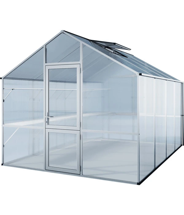 Verlassen Sie sich beim Gewächshaus Lilie IV auf beste Materialien, hohe Verarbeitungsqualität und eine zuverlässig stabile Konstruktion, entwickelt vom renommierten Markenhersteller KGT. Das heißt, dass Sie sich hier auf eine 10 mm starke, hochbruchfeste und wärmeisolierende Hohlkammerverglasung freuen dürfen, die wiederum stabil und sicher in korrosionsbeständigen Aluminiumprofilen gefasst ist. Sie sind angenehm leichtgewichtig, leicht zu verbauen, wirken elegant und absolut stabil. Ein abschließbarer Türdrücker und leichtgängige Scharniere runden das Gesamtbild hier perfekt ab.