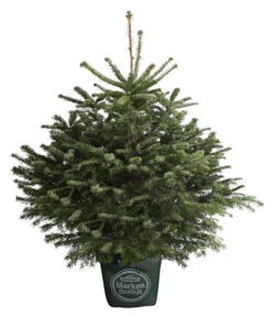 Unsere Nordmann-Tannen stammen alle aus anerkannten Baumschulen, wo sie von kleinen Setzlingen bis zu verkaufsfertigen Exemplaren gezogen werden. Diese Nordmann-Tanne ist vom ersten Tag an im Topf gewachsen, d.h. es wurden keine Wurzelteile entfernt, so dass Sie eine vitale Pflanze bekommen, die sich am neuen Standort im Garten prächtig entwickeln wird.
