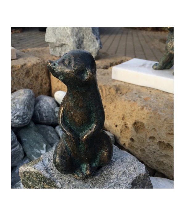 Sie mögen Tiere und verzieren gerne Ihren Garten mit tierischen Dekoelementen? Sie besitzen einen Teich oder einen Brunnen und suchen noch das passende Accessoire? Dann ist das wasserspeiende Bronze-Erdmännchen von Rottenecker genau das Richtige für Sie. Diese putzige Figur aus Bronze wirkt sowohl schüchtern als auch ausgesprochen aufmerksam. Die kleine, spitze Nase und die niedlichen Ärmchen machen diese Statue noch possierlicher. Zudem passt das Erdmännchen farblich perfekt zu Holz, Stein oder grünen Pflanzen. Es ist ein besonderes, wasserspeiendes Highlight in jedem Garten.