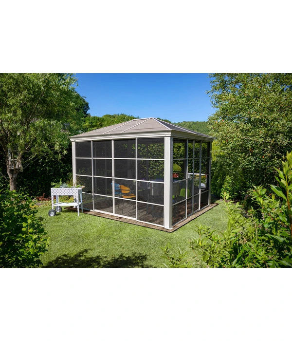 Der Sojag Pavillon Striano ist nämlich nicht nur mit vier praktischen Doppelschiebetüren ausgestattet, die Ihnen das Betreten von allen 4 Seiten komfortabel gestatten. Der Gartenpavillon kann außerdem mit Alu-verstärkten Moskitonetzen punkten. Und natürlich werden nicht nur lästige Stechmücken und Fliegen von den Moskitonetzen abgehalten, sondern auch die gefährlichen Wespen, die sich vor allem im Spätsommer für alle Speisen und Getränke interessieren, die Sie Ihren Lieben draußen servieren.