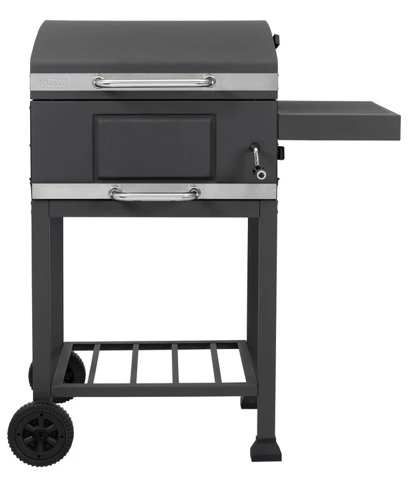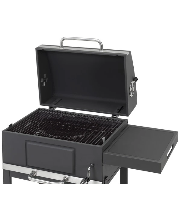 Zu einem entspannten Sommertag gehört einfach ein gelungenes Grillerlebnis im Kreise der Familie oder Freunde. Als ideale Grundlage hierzu dient der schicke Holzkohlegrill Toronto Basic aus dem Hause tepro. Er lässt sich dank der komfortablen Räder und des Wagengriffes zügig positionieren. Zudem besitzt er eine Seitenablage, die platzsparend eingeklappt werden kann und Ihnen bei Bedarf als perfekte Fläche für Utensilien dient. So haben Sie beim Zubereiten leckerer Speisen Ihren Pfannenwender oder ähnliche Hilfsmittel stets griffbereit. Auch das marinierte Gemüse und andere Köstlichkeiten sind so schnell erreichbar, um sie auf der großzügigen Grillfläche mit Rosteinsatz des tepro Holzkohlegrills Toronto Basic aufzulegen.