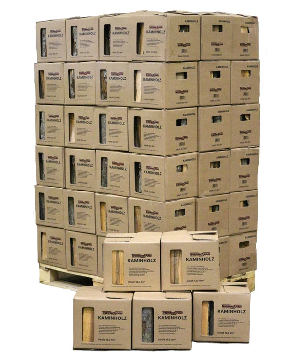 Sie erhalten 72 Kartons auf einer Palette, die für zahlreiche Einsätze Ihrer Öfen und anderweitiger Feuerstellen geeignet ist. Da das Holz von Thermospan eine Restfeuchte von ca. 22 Prozent aufweist, kann es ohne Wartezeit sofort verfeuert werden. Mit einer Scheitholzlänge von 25 bis 30 cm passt das Brennholz praktisch in jeden Kaminofen und jede Feuerschale. Es empfiehlt sich darüber hinaus, das Kaminholz trocken zu lagern, sodass es stets einsatzbereit bleibt und die Qualität nicht leidet. Treffen Sie jetzt Ihre Wahl und entscheiden Sie sich für das Kaminholz in Kartons aus dem Sortiment von Thermospan, um das Feuer in Kaminen und Öfen spielend leicht zu entflammen!