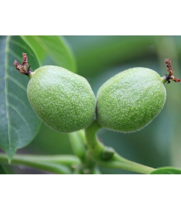Dieser Walnussbaum ist ideal für kleinere Gärten geeignet, denn er bildet eine kompakt bleibende Krone und wächst im Gegensatz zu seinen Artgenossen eher langsam. Da er mittelspät austreibt, müssen Sie keine Angst vor Spätfrösten haben. Ihre Ernte ist somit auch nach einem kalten Frühjahr sicher gestellt. Die Nüsse des Klon 139 sind mittelgroß und besitzen eine dünne Schale, wodurch sie leicht zum Öffnen sind. Das mild-süße Aroma zergeht einem förmlich auf der Zunge und man kann gar nicht mehr aufhören, die leckeren Walnüsse zu essen. Das ist auch kein Problem, denn diese sind sehr gesund. Sie enthalten Öle, Proteine, Vitamine und Mineralstoffe und helfen den Cholesterinspiegel zu senken. Die Öle treten beim Zerreiben der Blätter als Duft hervor und helfen so gegen lästige Mücken. Mit der Weinheimer Walnuss haben Sie einen weiteren Vorteil, denn sie kann bereits ab dem zweiten Standjahr Früchte tragen. Walnüsse sind übrigens gar keine Nüsse, sondern Steinobst. Nur wird hier der Samen im Kern und nicht, wie zum Beispiel bei Aprikosen, das Fruchtfleisch gegessen.