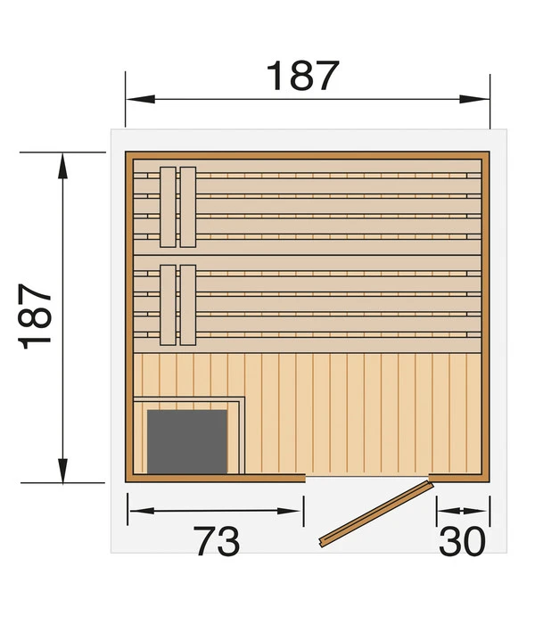 38 mm Vollholz-Bohlen, 9 kW Saunaofen