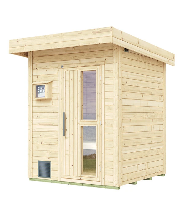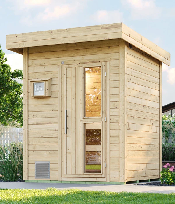 Der Trend “Saunieren im Garten“ begeistert immer mehr Menschen, denn es ist ein einzigartiges Erlebnis, beim gesunden Schwitzen in einen schön angelegten Garten blicken zu können, zur Abkühlung vielleicht in den Pool zu springen oder sich im Winter im Schnee zu wälzen und dann in eine dicke Decke gewickelt im Liegestuhl unter freiem Himmel zu entspannen, bevor Sie beim nächsten Saunagang wieder Hitze tanken. Und schließlich ist eine Gartensauna wie das Weka Saunahaus Naantali, das ganz aus naturbelassenem Holz gefertigt wurde, auch ein attraktiver Blickfang im Garten. Im Inneren warten zwei Liegen darauf, dass Sie allein oder zu zweit darauf Platz nehmen und der 9 kW starke Saunaofen, der im Angebot inbegriffen ist, kann Ihnen richtig einheizen. Lassen Sie sich von dem Weka Saunahaus Naantali ruhig mehr als einmal in der Woche zum gesunden Schwitzen verführen – nichts ist so entspannend für Körper und Seele.