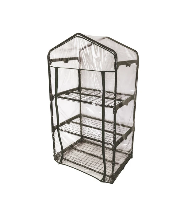 Der Wind kann dem Gewächshaus nichts anhaben, weil sein Stahlrohr-Rahmen und die drei Einlegeböden eine stabile Konstruktion bilden. Gleichwohl lässt sich das Haus einfach und schnell aufbauen. Anschließend können Sie Ihre Setzlinge bereits in ihr neues Zuhause übersiedeln. Öffnen Sie hierzu die Folienhülle frontseitig durch zwei Reißverschlüsse und befestigen Sie diese praktisch am oberen Ende mit dem vorhandenen Band. Wenn Sie perfekte Bedingungen für Ihre Kräuter- und Pflanzensprösslinge erzeugen wollen, besorgen Sie sich am besten gleich jetzt das Balkongewächshaus von Windhager.