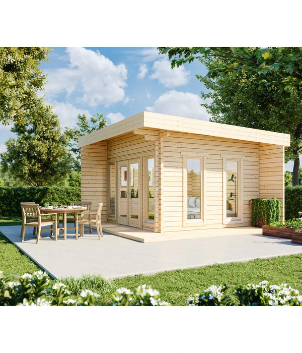 25 m², 70 mm Wandbohlen, Pultdach, Isolierglas